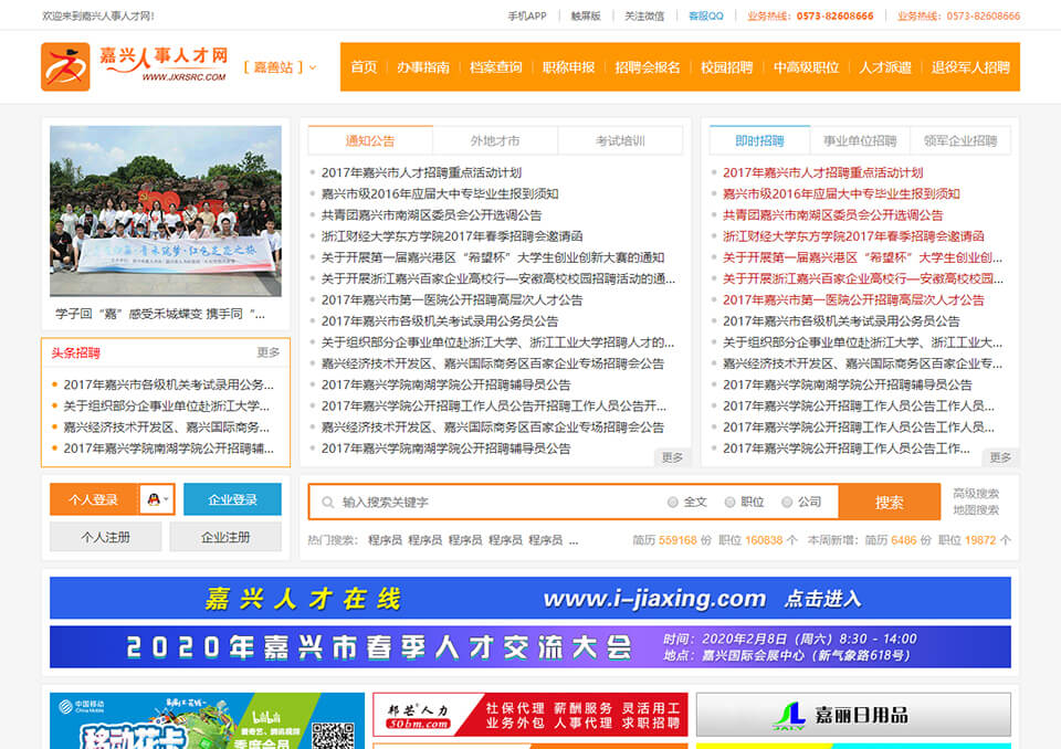 嘉興人才網(wǎng)( www.573job.com ),為用人單位和個(gè)人提供便捷、高效的互動(dòng)平臺(tái),現(xiàn)如今網(wǎng)站日均訪問(wèn)量15萬(wàn)次,擁有會(huì)員企業(yè)1萬(wàn)余家,在招職位5萬(wàn)余個(gè),為人才和企業(yè)提供更優(yōu)質(zhì)的互動(dòng)平臺(tái)!